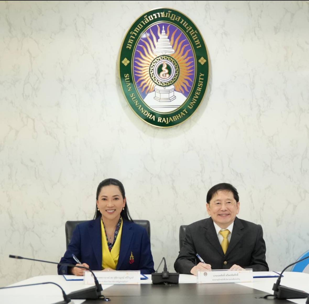 On August 1, 2025, Associate Professor Dr. Chutikarn Sriviboon, President of Suan Sunandha Rajabhat University, and Mr. Noppasak Treepornchaisak, Chief Executive Officer of Ruam Charoen Phatthana Public Company Limited, signed a Memorandum of Understanding (MoU). The MoU was also signed by Assistant Professor Kanyapat Utapao, Dean of the College of Communication Arts, and Dr. Patcharee Treepornchaisak, Chief Financial Officer of the company, along with executives and representatives from both parties. The signing ceremony took place in the President's Office Conference Room, 5th Floor, Building 32, Suan Sunandha Rajabhat University.