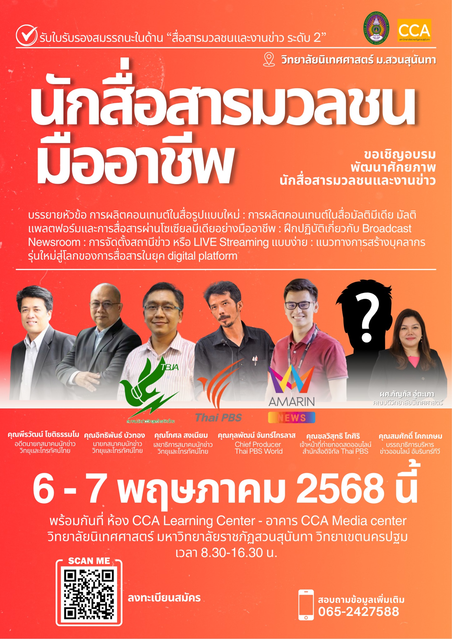 in collaboration with the Thai Radio and Television Journalists Association on 6-7 May 2025 from 8:30 a.m. to 4:30 p.m. at the Digital Learning Center, 3rd floor, to develop, upgrade, create understanding and promote the potential of teachers to have standards and be professionals in all aspects of mass communication.