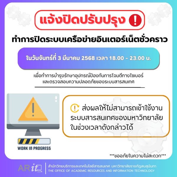 Notice of temporary closure of internet network system for maintenance