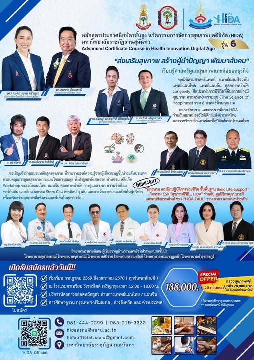 For more information or to apply, please contact: Tel: 081-444-0099, 083-015-3333 Line/Facebook: HIDA Official Email: hidaofficial.ssru@gmail.com Website: hidassru@ssru.ac.th
