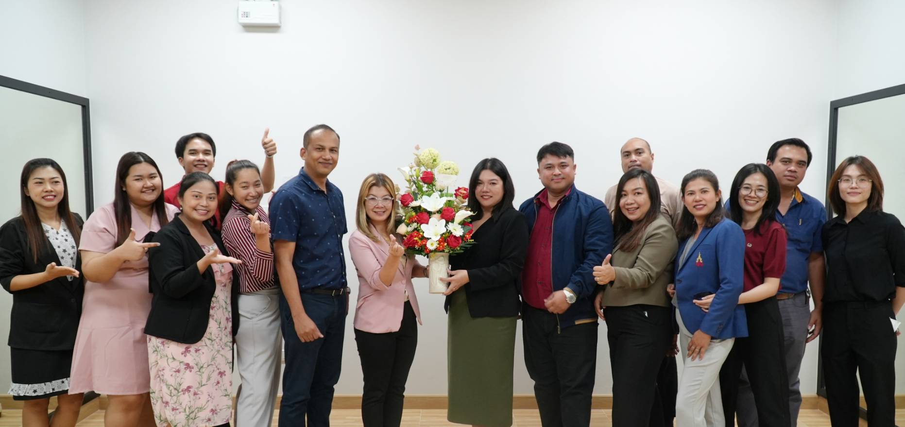 with staff, congratulated Ms. Kesinee