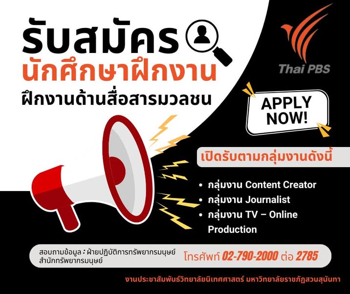 For more details , https://org.thaipbs.or.th/career/internshiprecruit