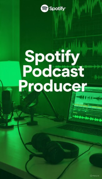 Spotify produces podcasts, including content creation, recording, and audio editing.