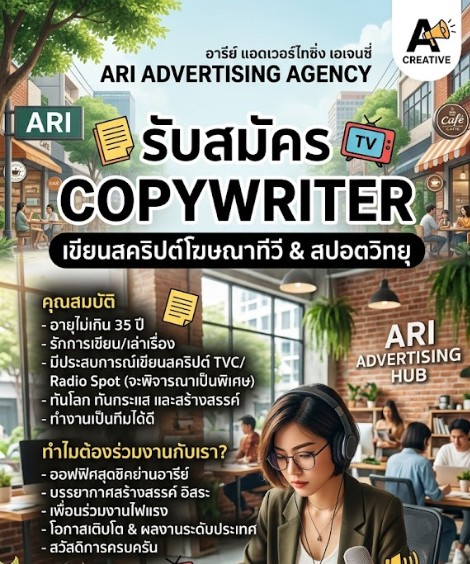 We are hiring a Copywriter to write TV commercial scripts and radio spots.