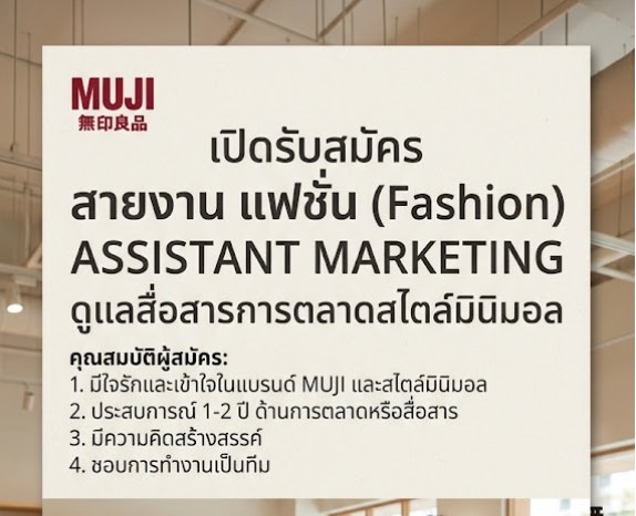 Hiring an Assistant Marketing Officer for the Fashion division, responsible for minimalist-style marketing communications.