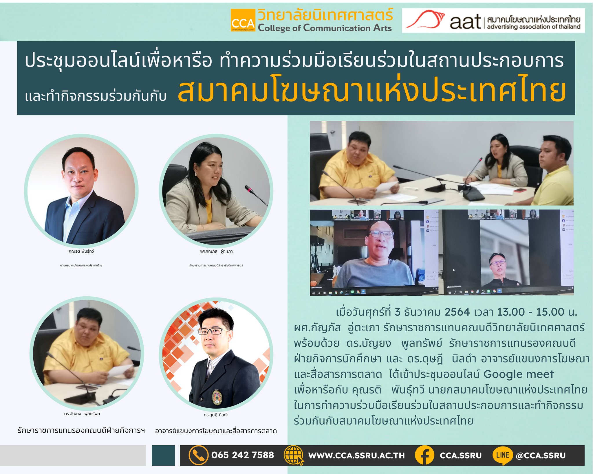 ในการทำความร่วมมือเรียนร่วมในสถานประกอบการและทำกิจกรรมร่วมกันกับสมาคมโฆษณาแห่งประเทศไทย