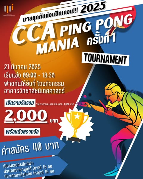 **ค่าสมัคร 40 บาท (เฉพาะนักศึกษาวิทยาลัยนิเทศศาสตร์)