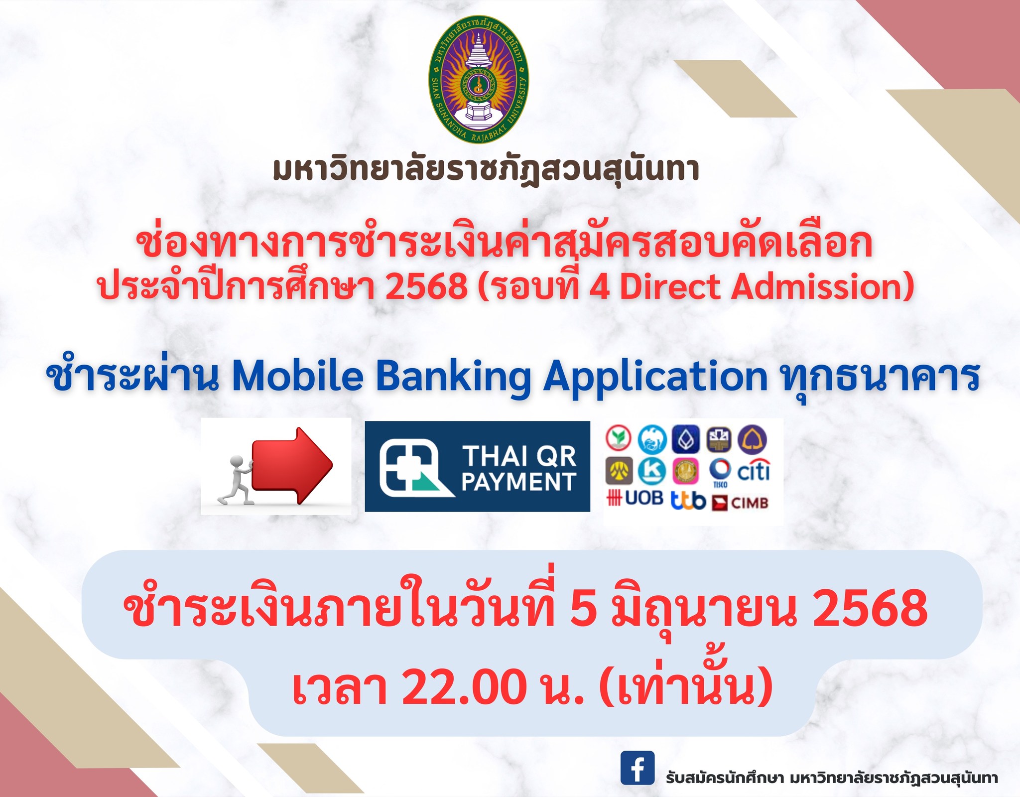 ผู้สมัครชำระเงินภายในวันที่