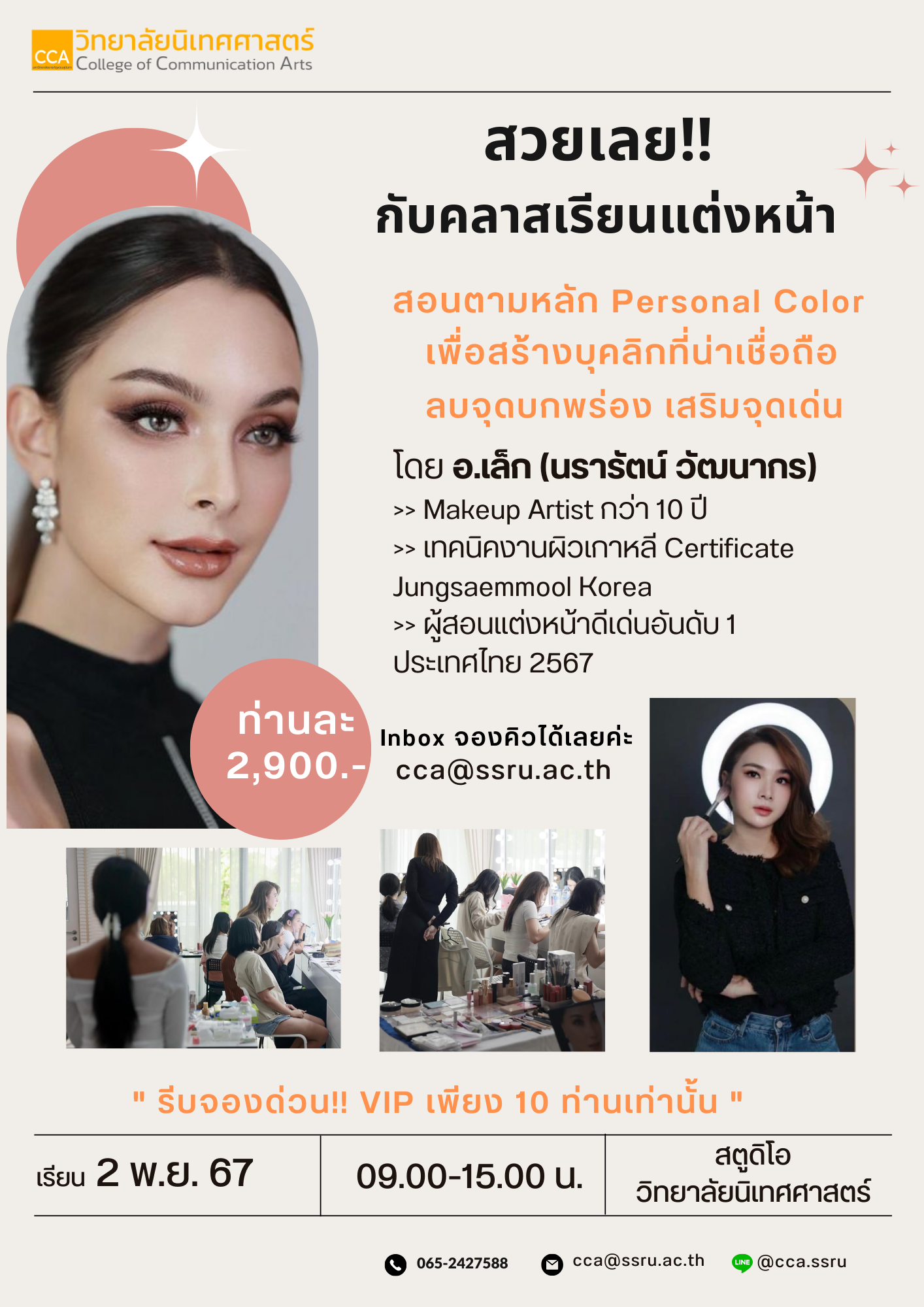 “เรียนแล้วจะพบว่าซื้อเครืองสำอางค์ผิดสีมาเป็นหมื่น ลงทุนเรียนแล้วต่อไปจะประหยัดเวลาและค่าเครื่องสำอางค์ไปตลอดชีวิต บุคลิกภาพดีและประทับใจผู้คน”