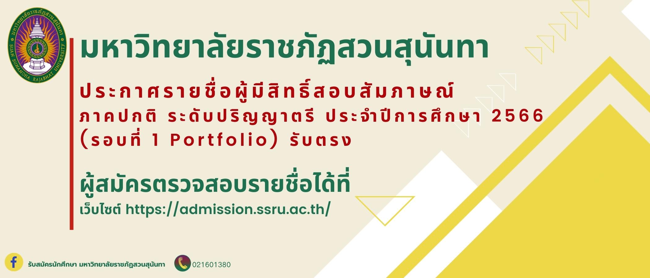 ขั้นตอนการตรวจสอบรายชื่อผู้มีสิทธิ์สอบสัมภาษณ์ ภาคปกติ ระดับปริญญาตรี ประจำปีการศึกษา 2566 (รอบที่ 1 Portfolio) รับตรง