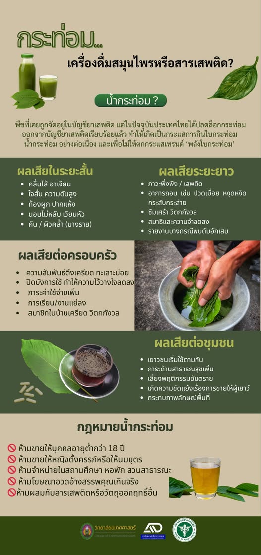 ทำสื่อให้ความรู้เกี่ยวกับน้ำกระท่อม "กระท่อม” เครื่องดื่มสมุนไพร…หรือสารเสพติด?"