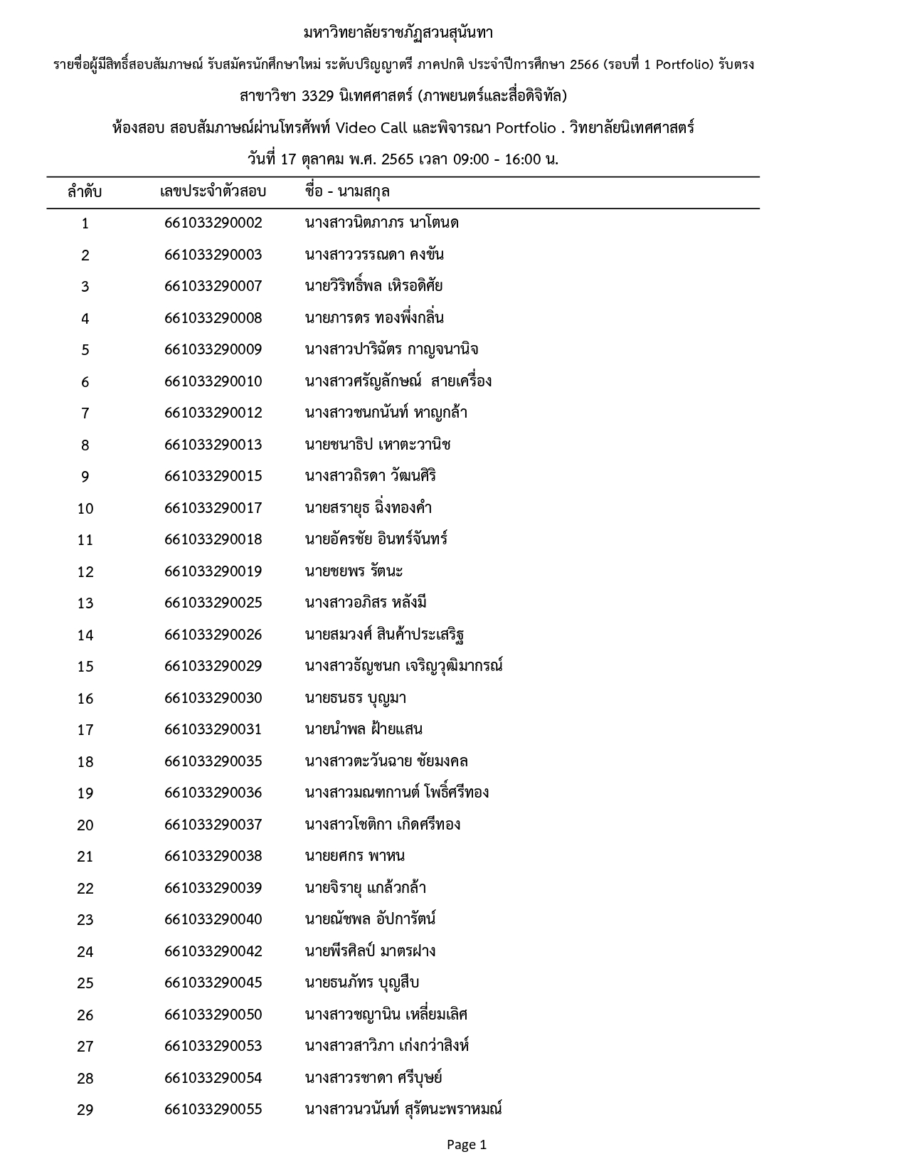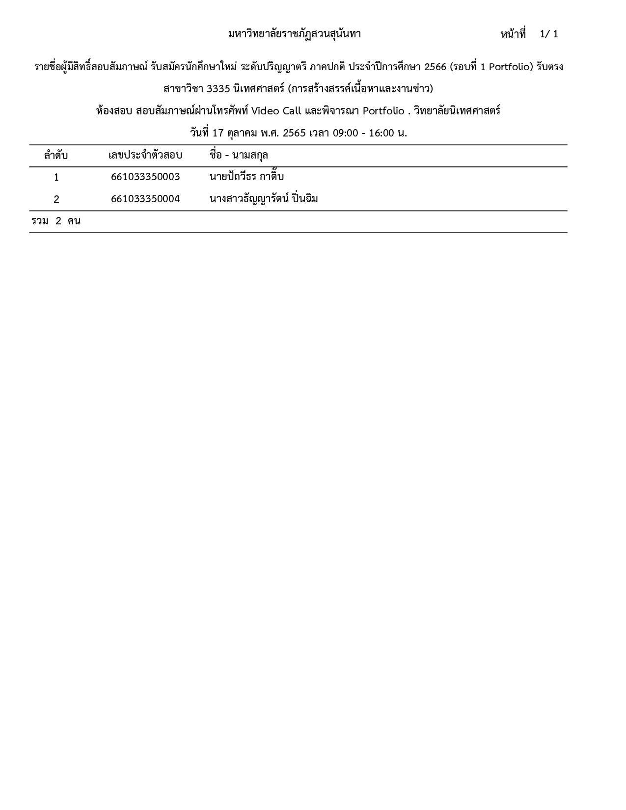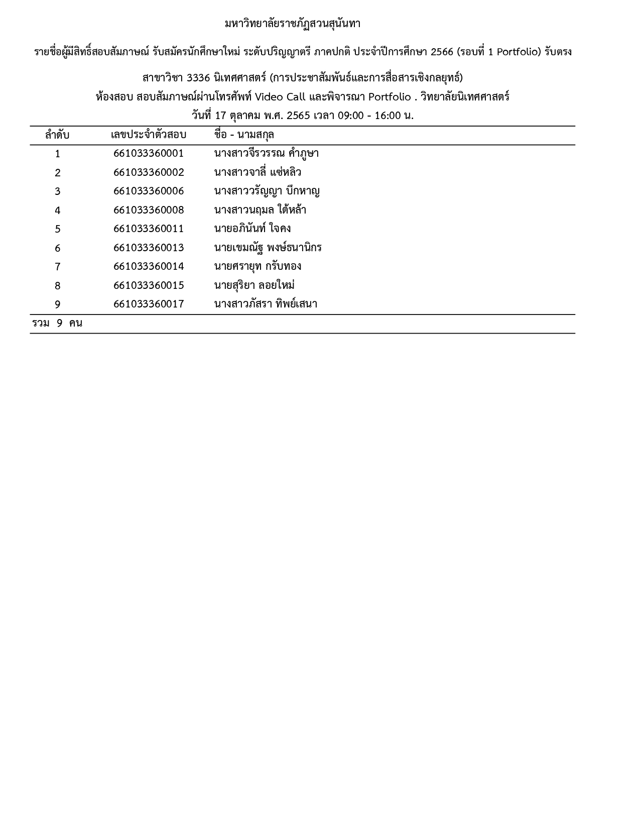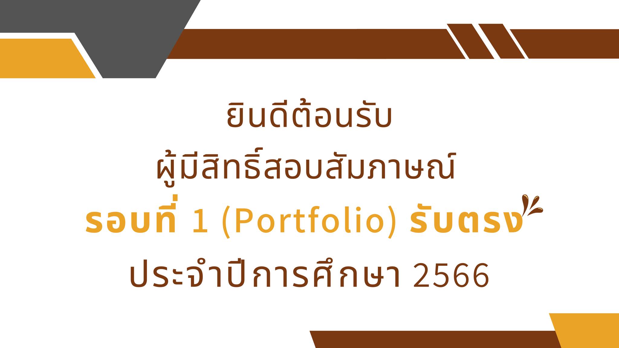 ประกาศรายชื่อผู้มีสิทธิ์สอบสัมภาษณ์ รอบที่ 1 (Portfolio) รับตรง ประจำปีการศึกษา 2566 โดยสอบสัมภาษณ์ทาง VDO CALL