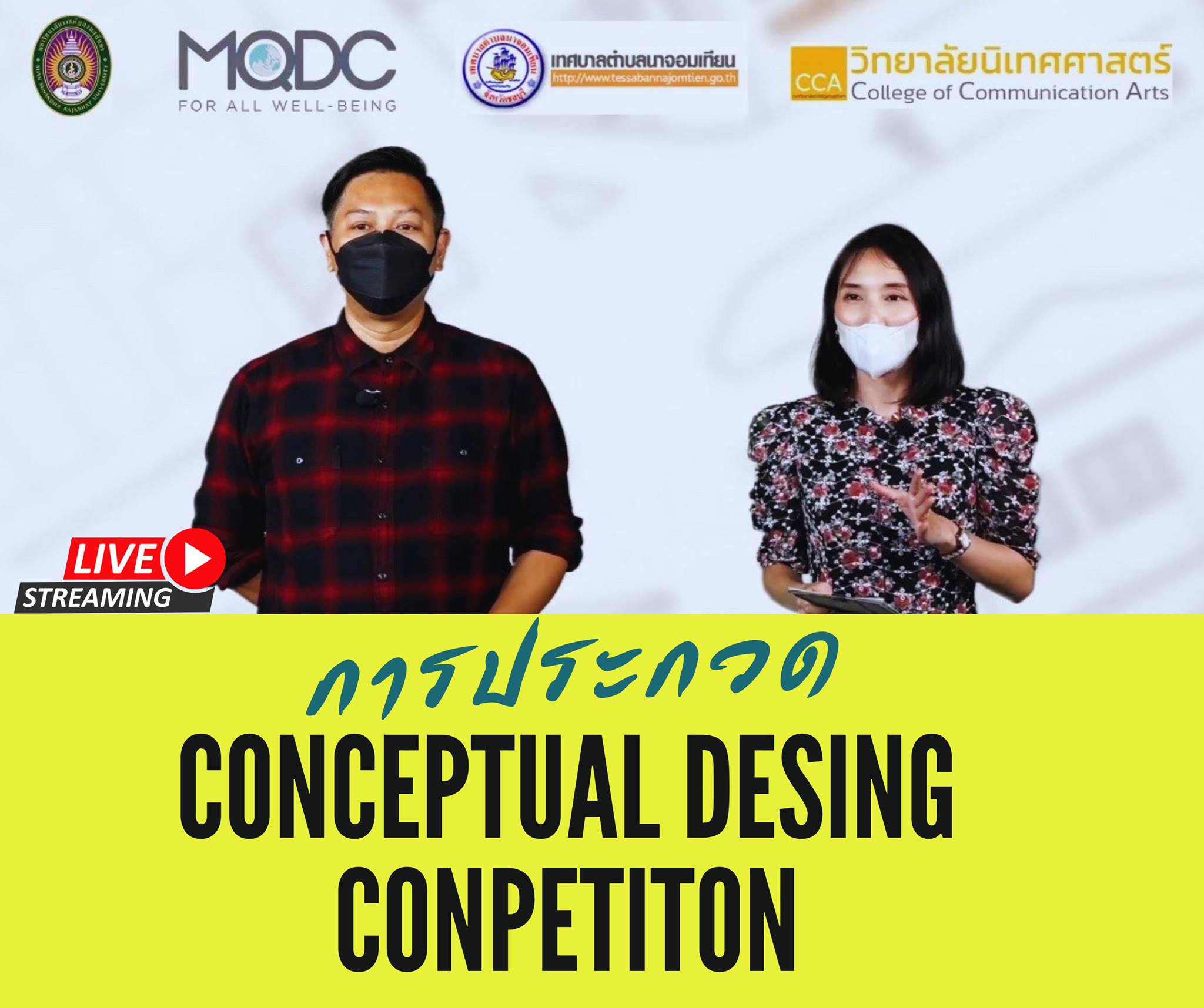 วันที่ 11 ต.ค. 2564 เวลา 13.00-14.30 น. ผศ.ธนิต พฤกธรา รักษาราชการแทนรองคณบดีฝ่ายวิจัยและบริการวิชาการ และ อ.ปุณรภา ประดิษฐพงษ์ รับหน้าที่เป็นพิธีกร ในการให้รายละเอียดและให้ความรู้ผ่านวิทยากรด้านการออกแบบและการใช้วัสดุเหลือใช้กับการออกแบบ ในงานการประกวด “ออกแบบป้อมจราจร” ให้มีความน่าสนใจ (Landmark) และส่งเสริมการท่องเที่ยว ในชุมชนบ้านอำเภอ เมืองพัทยา ผ่านแนวคิดจากการนำวัสดุรีไซเคิล และวิถีชุมชนเพื่อสร้างการจดจำภายใต้เอกลักษณ์ของชุมชนด้วยไอเดียและแนวคิดที่ทันสมัย ณ ห้องสตูดิโอ วิทยาลัยนิเทศศาสตร์ โดยทำการ Live Streaming ผ่านเพจเฟสบุ๊ค Conceptual Design Contest