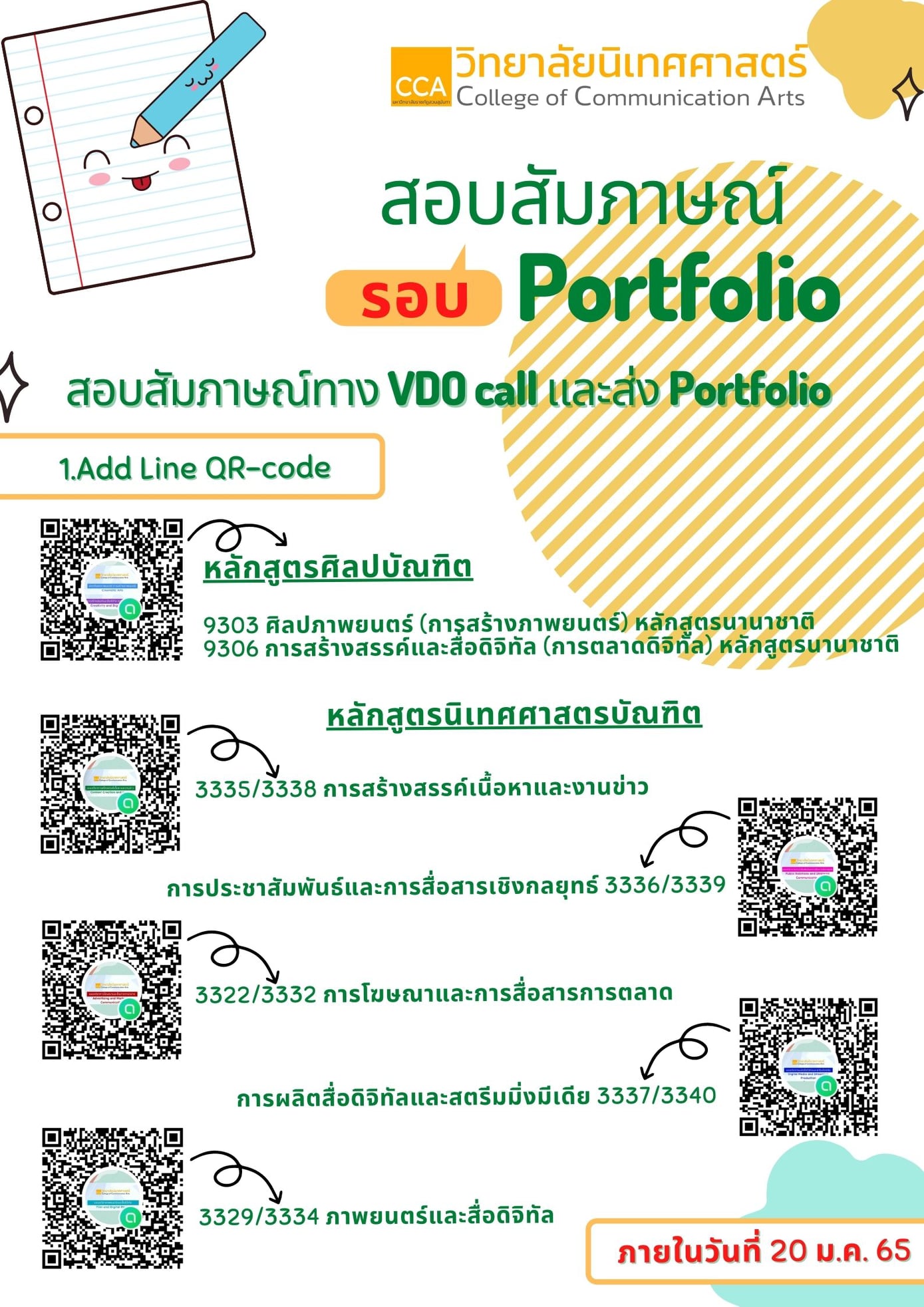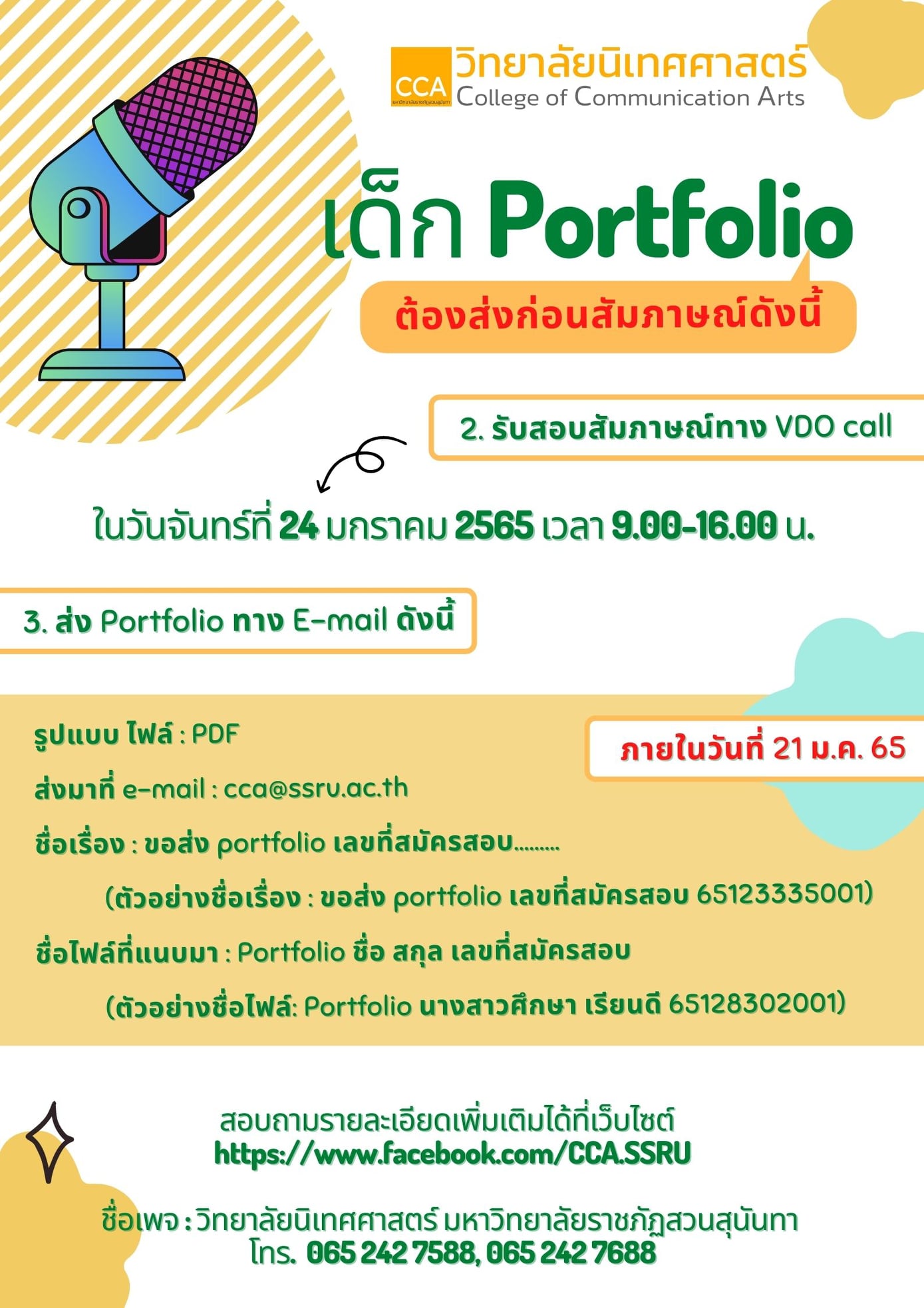 สอบถามรายละเอียดเพิ่มเติมได้ที่เว็บไซต์ https://www.facebook.com/CCA.SSRU