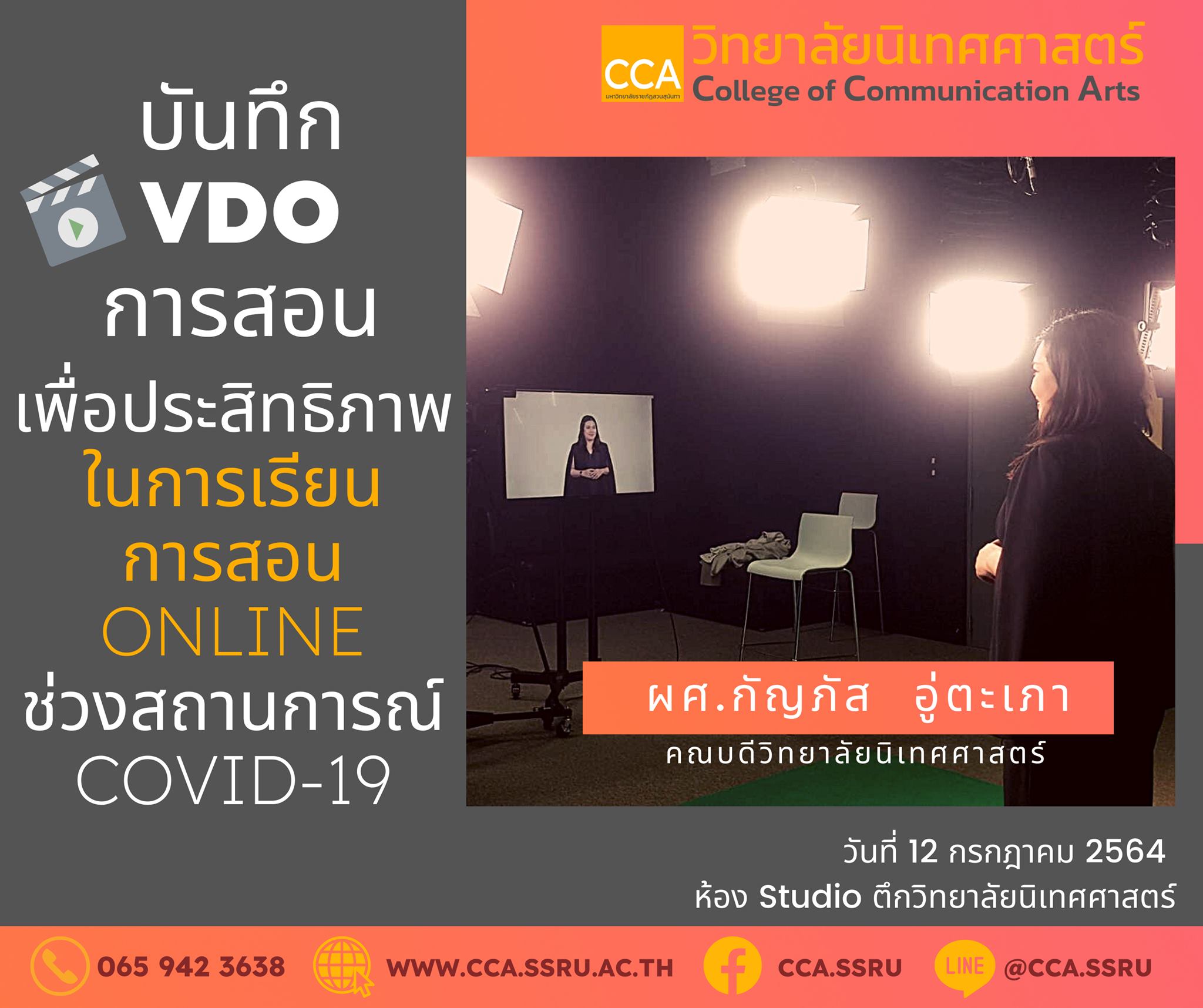 คณบดีวิทยาลัยนิเทศศาสตร์ ผศ.กัญภัส อู่ตะเภา เดินหน้าอัดเทปการเรียนการสอนออนไลน์