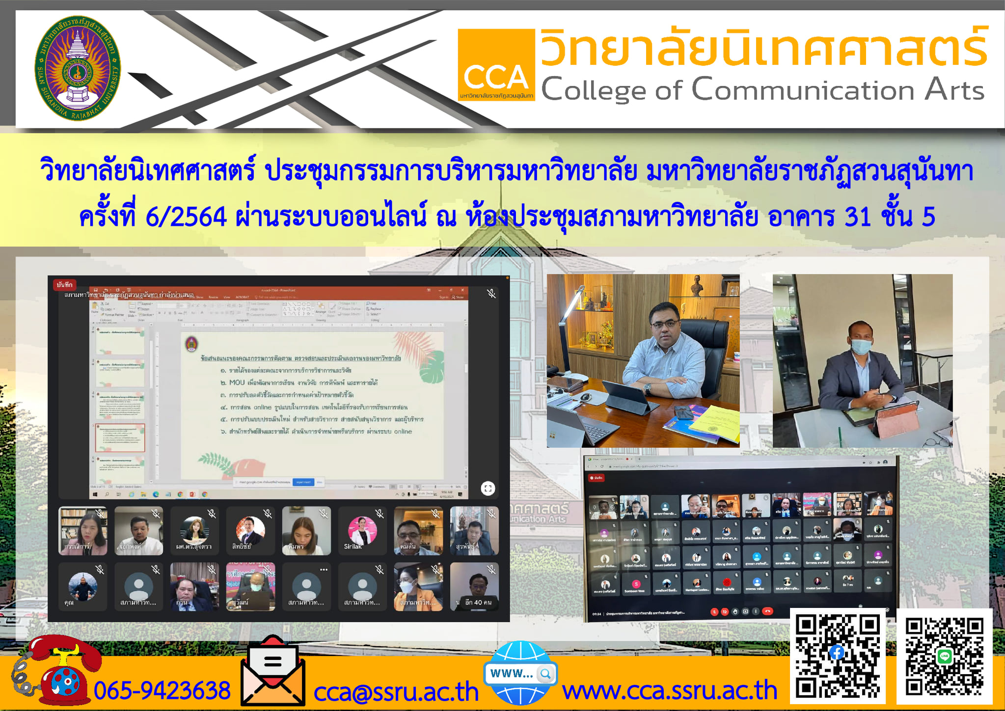 ผู้ช่วยศาสตราจารย์ ดร.คมสัน โสมณวัตร รักษาราชการแทนคณบดีวิทยาลัยนิเทศศาสตร์ พร้อมด้วยรักษาราชการแทนหัวหน้าสำนักงาน เข้าร่วมประชุมกรรมการบริหารมหาวิทยาลัย มหาวิทยาลัยราชภัฏสวนสุนันทา ครั้งที่ 6/2564