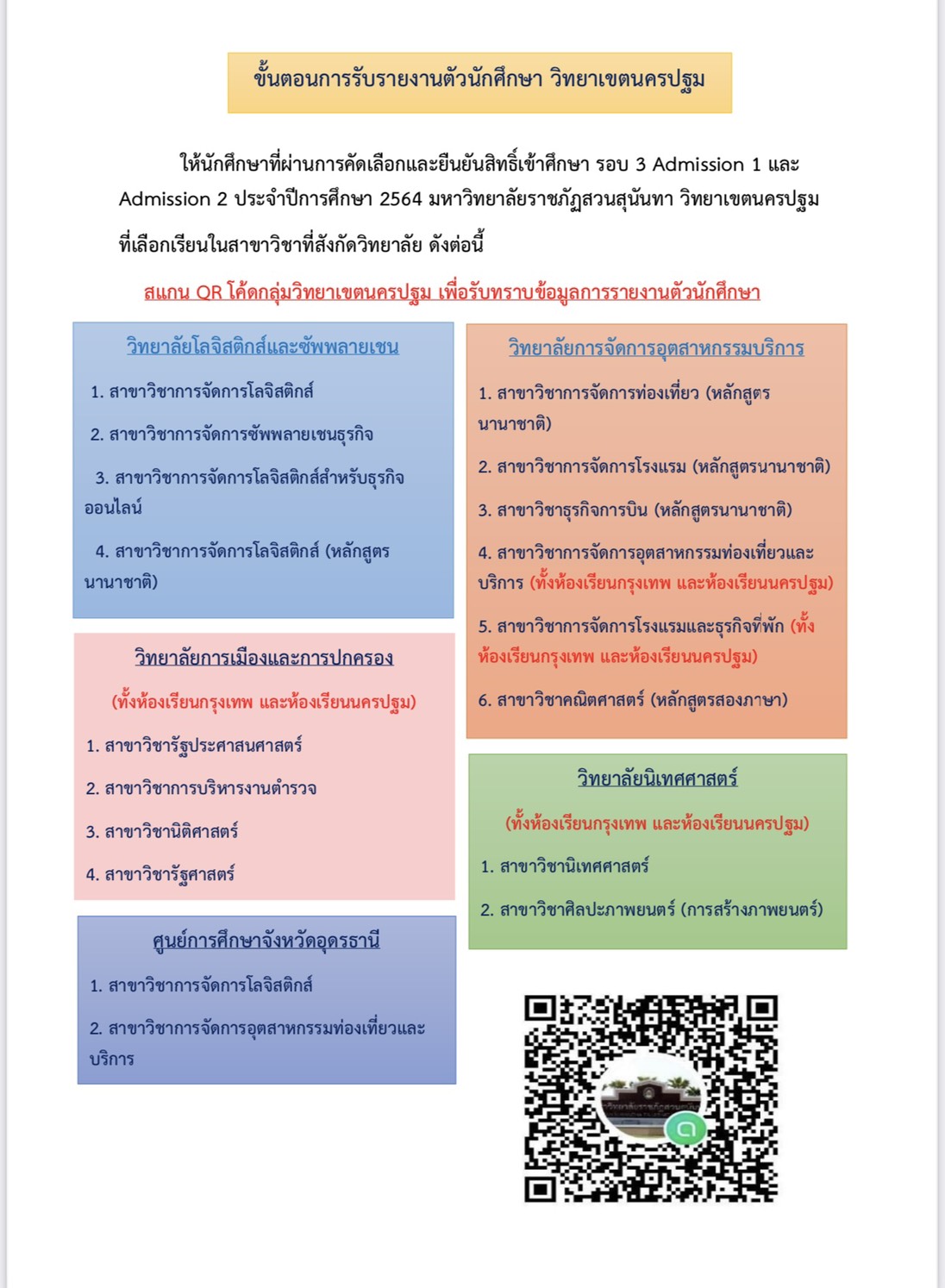 > สแกน QR Code เพื่อรับทราบข้อมูลขั้นตอนการรับรายงานตัวนักศึกษา