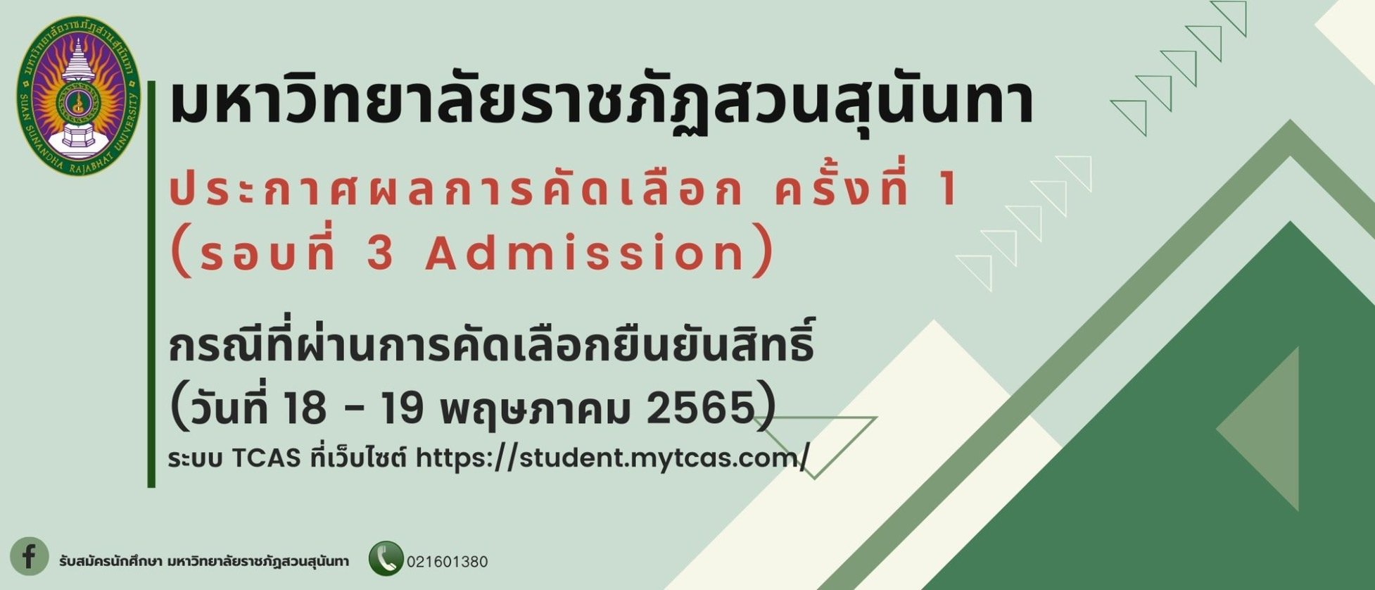 ประกาศผลการคัดเลือก ครั้งที่ 1 ประจำปีการศึกษา 2565 (รอบที่ 3 Admission)