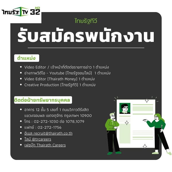 ไทยรัฐทีวี รับสมัครพนักงาน หลายตำแหน่ง ดังนี้