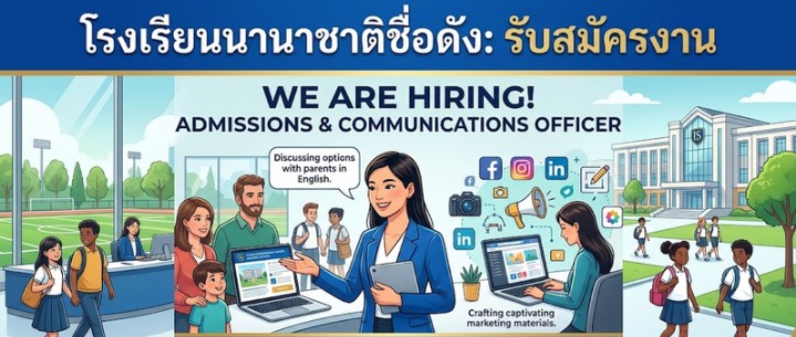 รับ Admissions & Communications Officer สื่อสารกับผู้ปกครองภาษาอังกฤษและทำสื่อการตลาด