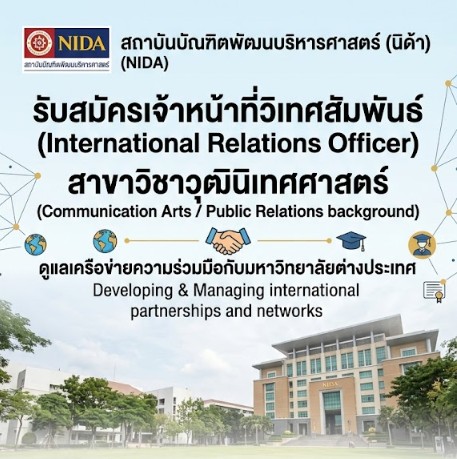 รับเจ้าหน้าที่วิเทศสัมพันธ์ (วุฒินิเทศศาสตร์) ดูแลเครือข่ายความร่วมมือกับมหาวิทยาลัยต่างประเทศ