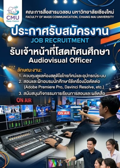 • รับเจ้าหน้าที่โสตทัศนศึกษา ควบคุมห้องสตูดิโอและสอนนักศึกษาใช้เครื่องมือตัดต่อ