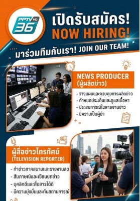 สถานีข่าวและสารคดีเปิดรับบุคลากรด้านข่าวเพื่อผลิตรายการข่าวโทรทัศน์และคอนเทนต์ดิจิทัล โดยผู้สมัครต้องมีทักษะการเขียนข่าว การวิเคราะห์ประเด็น และการทำงานร่วมกับทีมโปรดักชัน