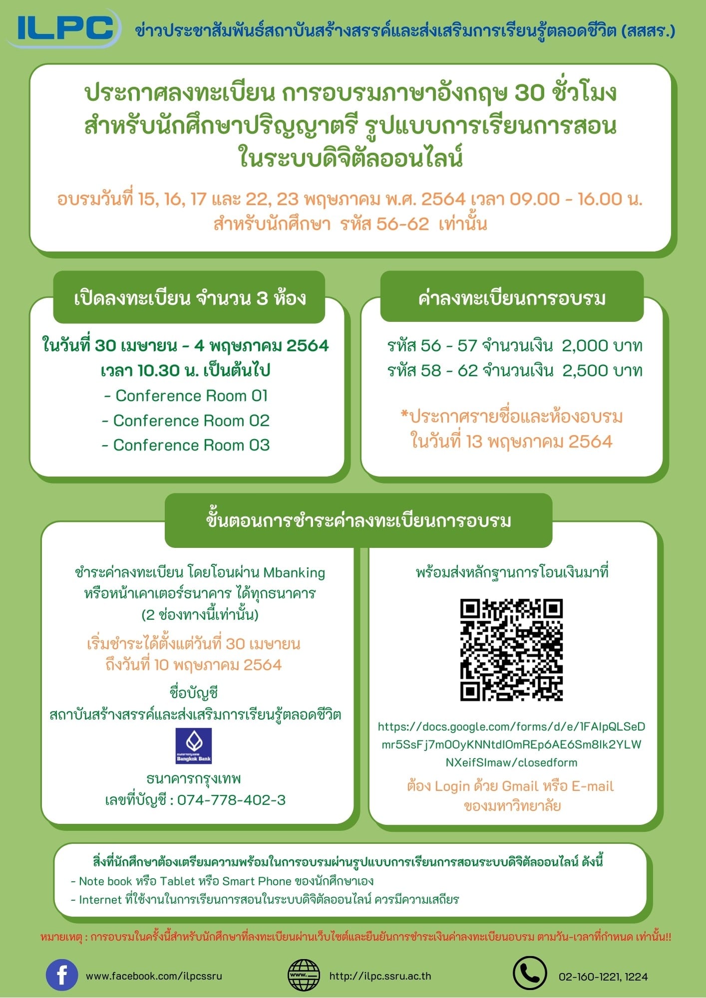> ประกาศการเปิดลงทะเบียนอบรมภาษาอังกฤษ 30 ชั่วโมง