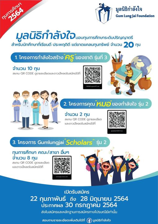 > มูลนิธิกำลังใจ เปิดรับสมัครทุนการศึกษาระดับปริญญาตรี จำนวน 20 ทุน!