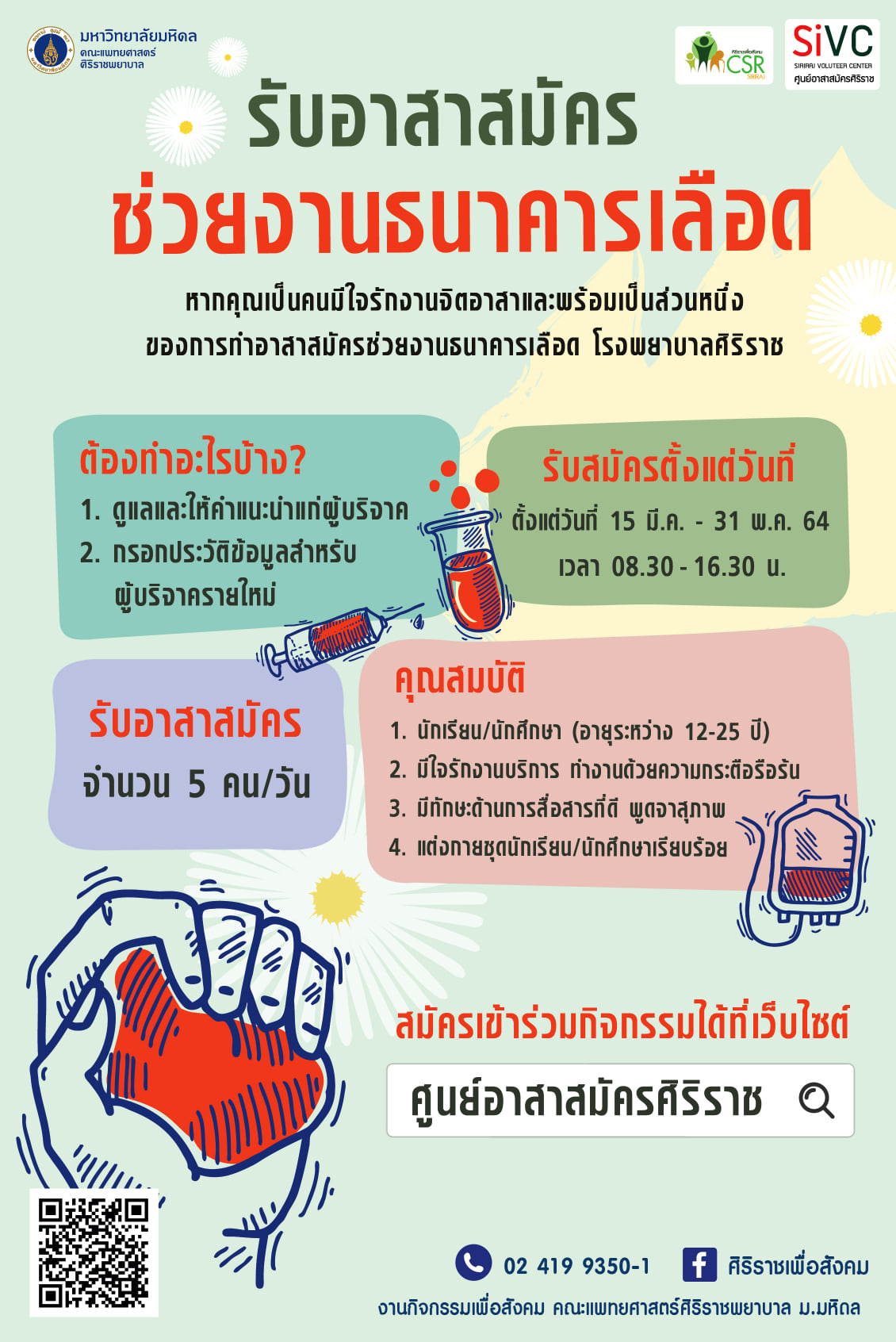 ศูนย์อาสาสมัครศิริราช ขอเชิญนักเรียน