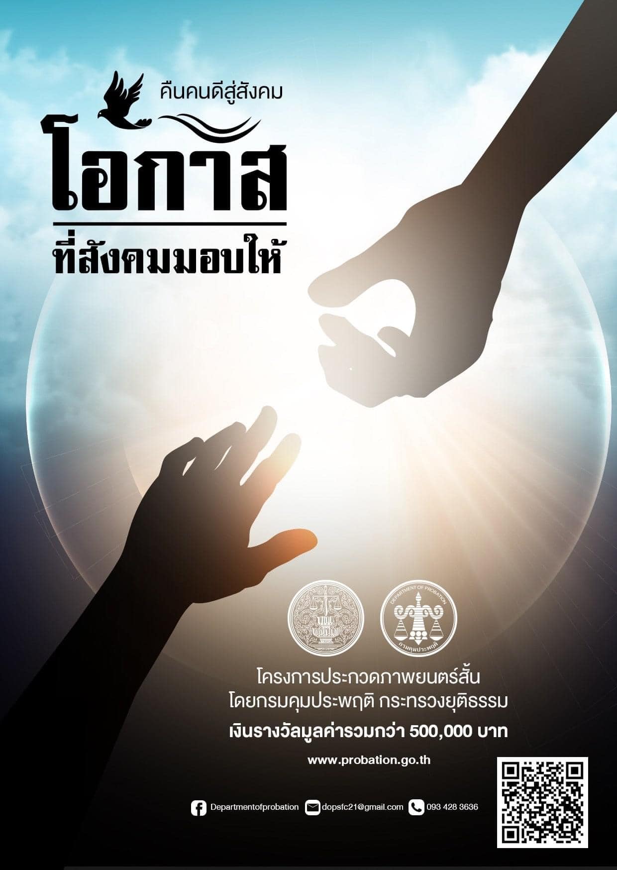 กรมคุมประพฤติ กระทรวงยุติธรรม ได้กำหนดจัดโครงการประกวดหนังสั้น ภายใต้หัวข้อ “โอกาสที่สังคมมอบให้”