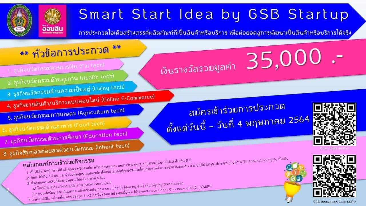 โครงการ Smart Start Idea by GSB startup ชิงเงินรางวัลมูลค่ารวมกว่า 35,000 บาท
