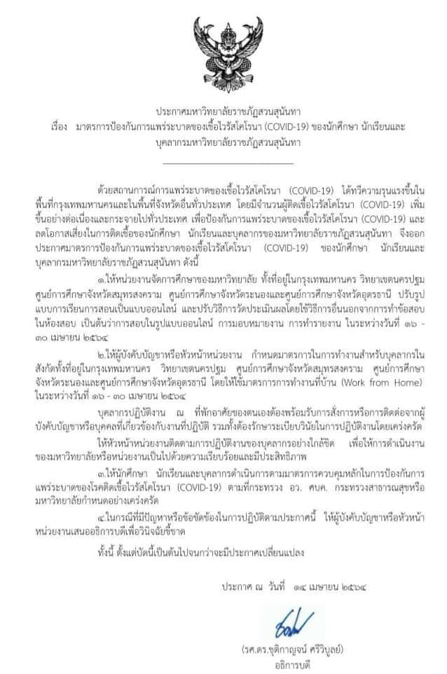 ประกาศมหาวิทยาลัยราชภัฏสวนสุนันทา เรื่อง