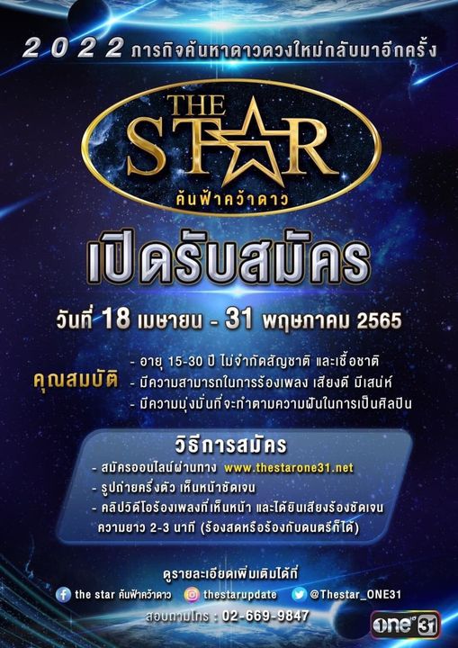 > The star ค้นฟ้าคว้าดาว 2022 เปิดรับสมัคร