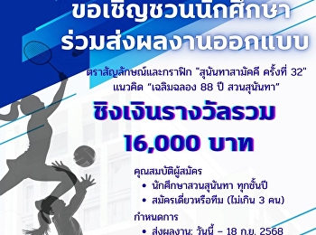 ส่งผลงานออกแบบตราสัญลักษณ์และกราฟิก "กีฬาสวนสุนันทาสามัคคี ครั้งที่ 32" ภายใต้แนวคิด เฉลิม ...