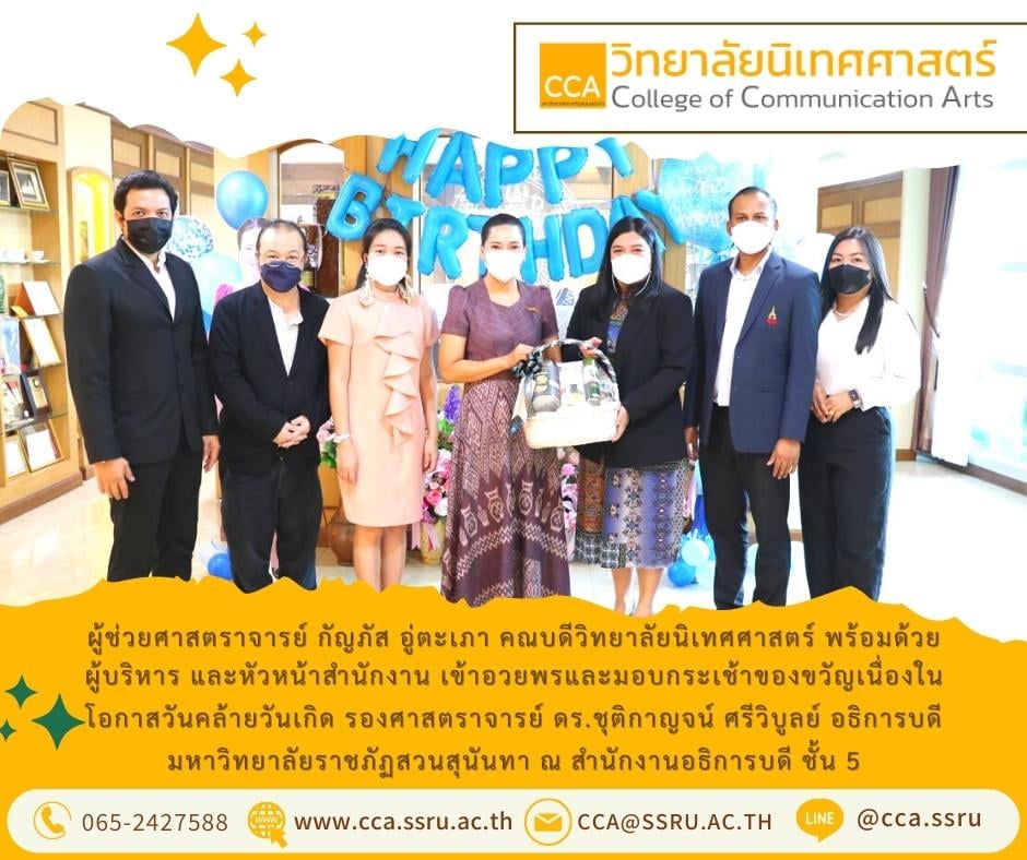 เข้าอวยพรและมอบกระเช้าของขวัญเนื่องในโอกาสวันคล้ายวันเกิด รองศาสตราจารย์ ดร.ชุติกาญจน์ ศรีวิบูลย์ อธิการบดี มหาวิทยาลัยราชภัฏสวนสุนันทา