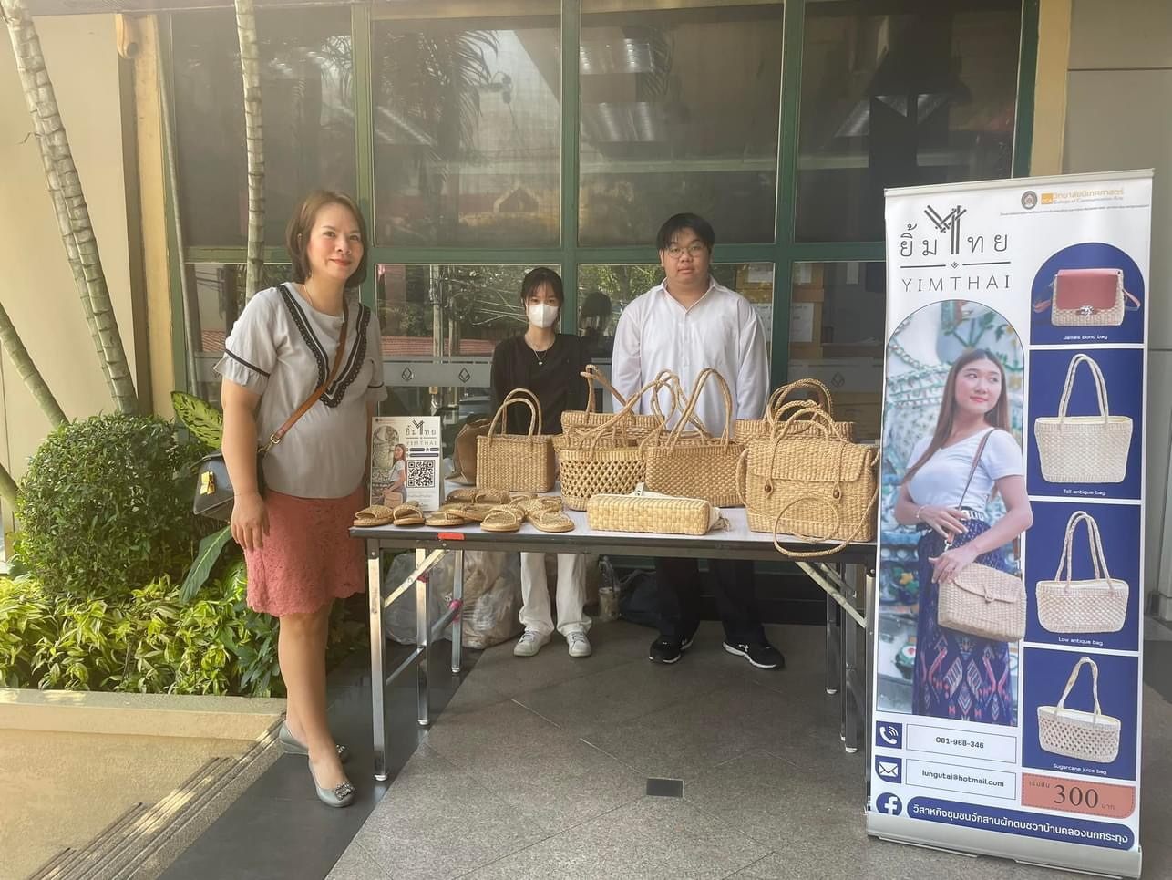 College of Communication Arts, Suan Sunandha Rajabhat University In this fiscal year, we conducted research on the national budget to help with grassroots economic projects. Therefore, we chose products from water hyacinths from the Ban Khlong Krathung community. Nakhon Pathom Province which is a product from water hyacinth under the brand “Yim Thai” in the study of product branding Marketing communications and trial sales 2 At Suan Sunandha Rajabhat University and Owl Market Weaving water hyacinth "Yamthai", love Thai, save the world, use "Yamthai"