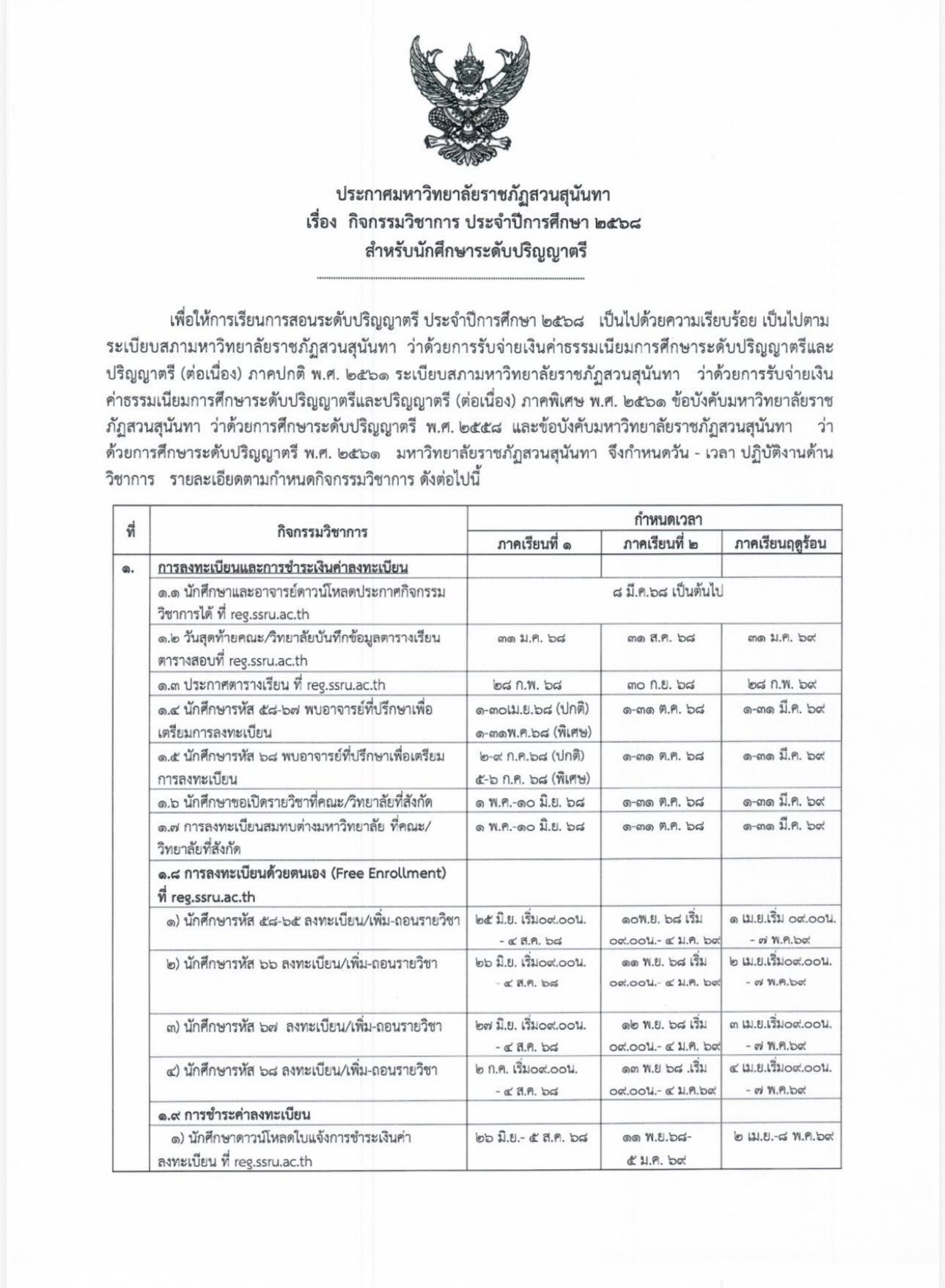 ปฎิทินวิชาการ มหาวิทยาลัยราชภัฏสวนสุนันทาประจำปีการศึกษา 2568