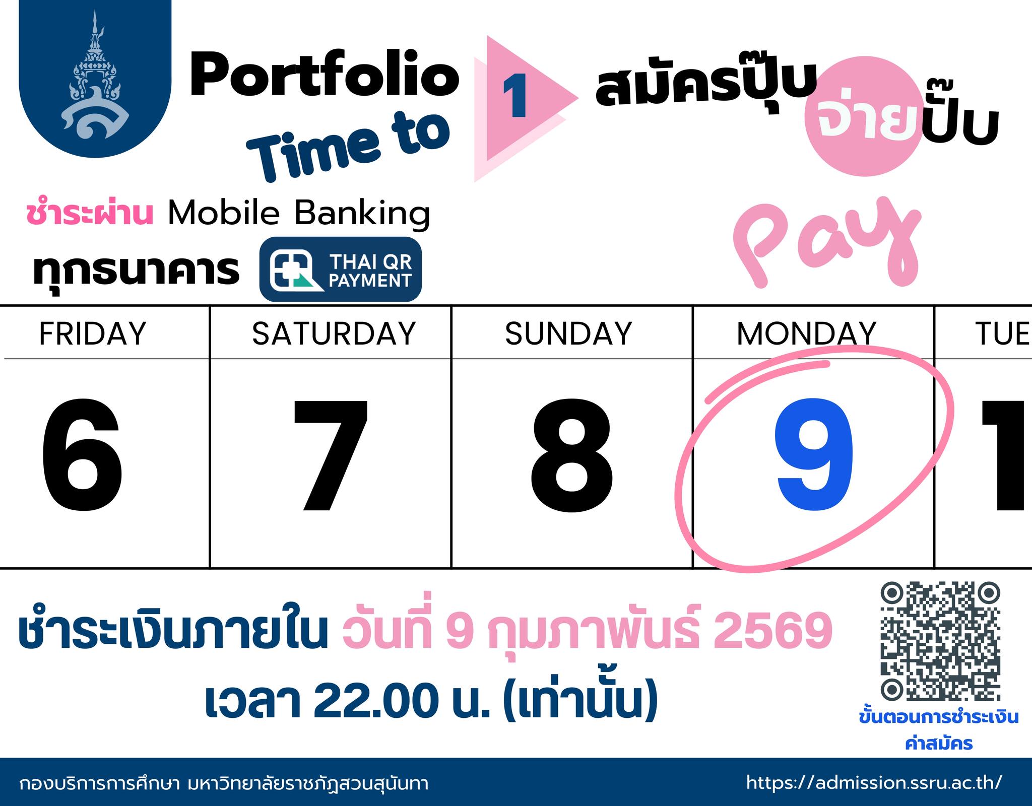 แจ้งน้องๆที่สมัครเรียนนิเทศศาสตร์ รอบที่ 1 (Portfolio) ที่ยังไม่ได้ชำระเงินค่าสมัครเข้าเรียน สามารถชำระเงินค่าสมัครเข้าเรียนจำนวน 350 บาท