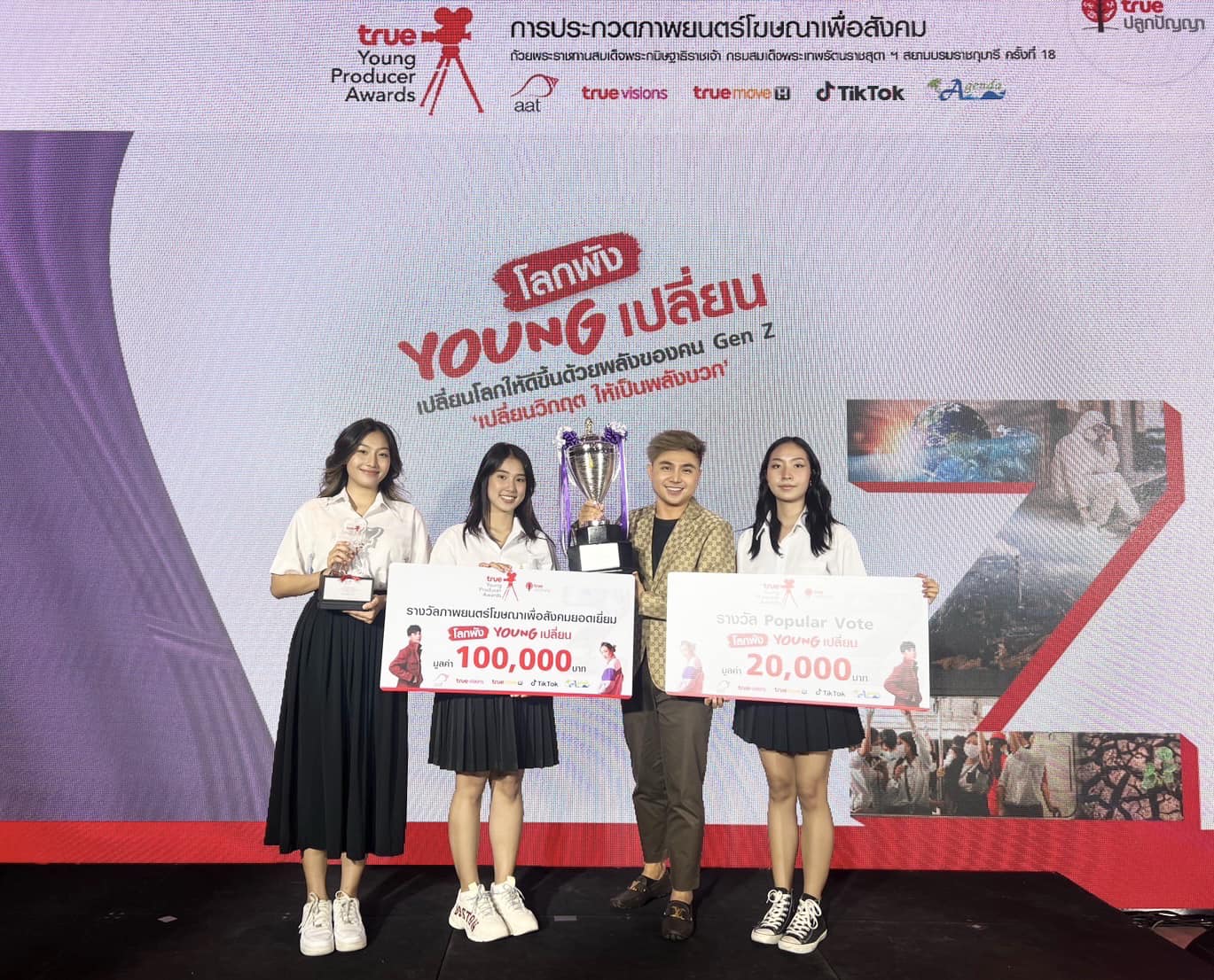 วิทยาลัยนิเทศศาสตร์ มหาวิทยาลัยราชภัฏสวนสุนันทา ร่วมแสดงความยินดีกับ นางสาวกรรวี สัมปัตติกร นางสาวประภัสสร บุญสังข์และนางสาวทิพกร เหล่าคุ้ม นักศึกษาชั้นปีที่ 3 แขนงการโฆษณาและสื่อสารการตลาด สวนสุนันทา วิทยาลัยนิเทศศาสตร์ มหาวิทยาลัยราชภัฏสวนสุนันทา ที่ได้รับรางวัล “ภาพยนตร์โฆษณาเพื่อสังคมยอดเยี่ยม” และรางวัล “Popular Vote” พร้อมรับถ้วยพระราชทานสมเด็จพระกนิษฐาธิราชเจ้า กรมสมเด็จพระเทพรัตนราชสุดา ฯ สยามบรมราชกุมารี จากการประกวดภาพยนตร์เพื่อสังคมโครงการ “True Young Producer Awards 2022” ครั้งที่ 18 โดยมี ผศ.ดร.ประกายกาวิล ศรีจินดา เป็นอาจารย์ที่ปรึกษาโครงการ