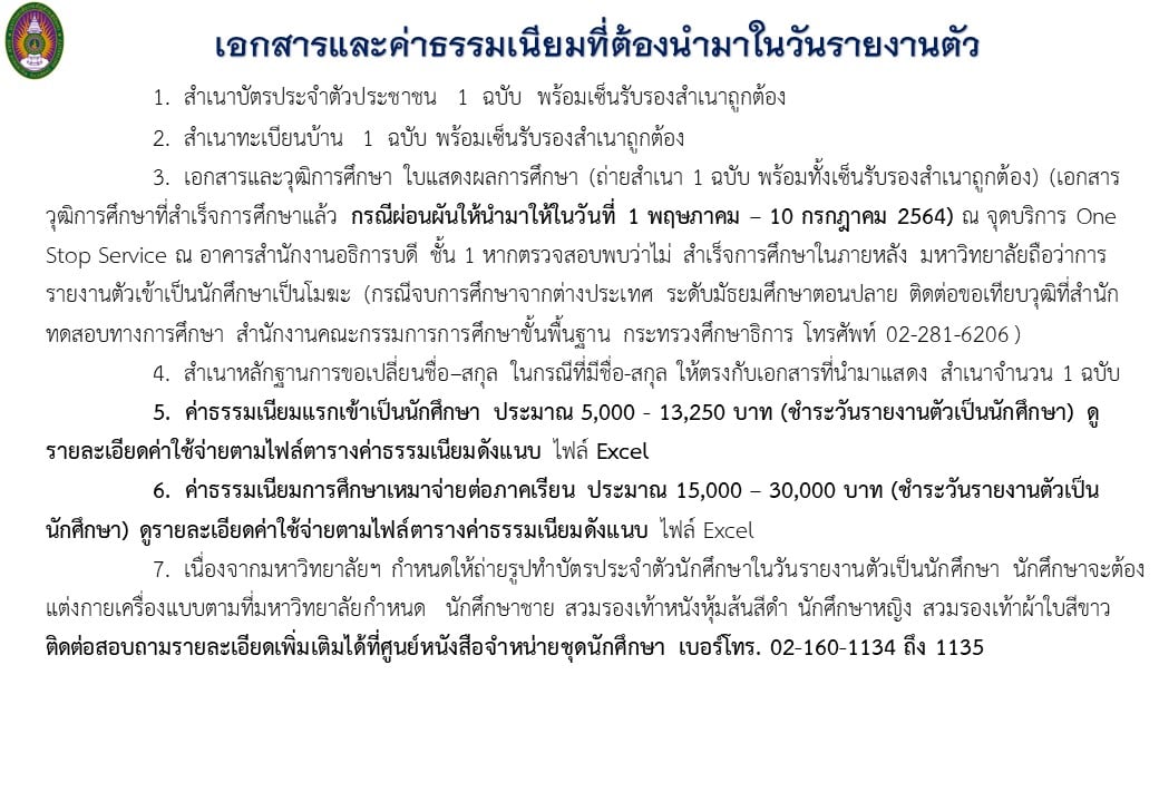 หมายเหตุ หากนักศึกษาท่านใดที่ไม่สามารถมารายงานตัวได้ตามวันที่กำหนด เช่น ไม่สามารถมารายงานตัวในวันที่ 16 มี.ค. 64 วิทยาเขตนครปฐมได้ ให้นักศึกษาเลือกระหว่างวันที่ 11-13 มี.ค. 64 รายงานตัวในมหาวิทยาลัยใหญ่ กรุงเทพฯ ได้