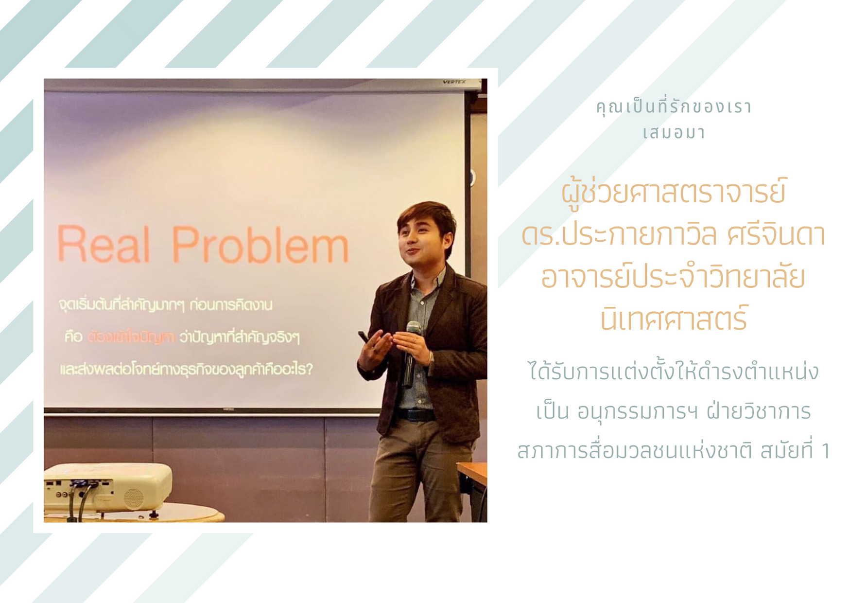 วิทยาลัยนิเทศศาสตร์ สวนสุนันทา มีแต่คน cool cool !!! หนึ่งในนั้นคือท่านอาจารย์ ผู้ช่วยศาสตราจารย์ ดร.ประกายกาวิล ศรีจินดา อาจารย์ประจำวิทยาลัยนิเทศศาสตร์ ล่าสุดได้รับการแต่งตั้งให้ดำรงตำแหน่งเป็น อนุกรรมการฯ ฝ่ายวิชาการ สภาการสื่อมวลชนแห่งชาติ สมัยที่ 1 เป็นหนึ่งใน 11 ท่านที่มีความเชี่ยวชาญและได้รับการยอมรับในวิชาชีพด้านนิเทศศาสตร์ ระดับประเทศอีกท่าน