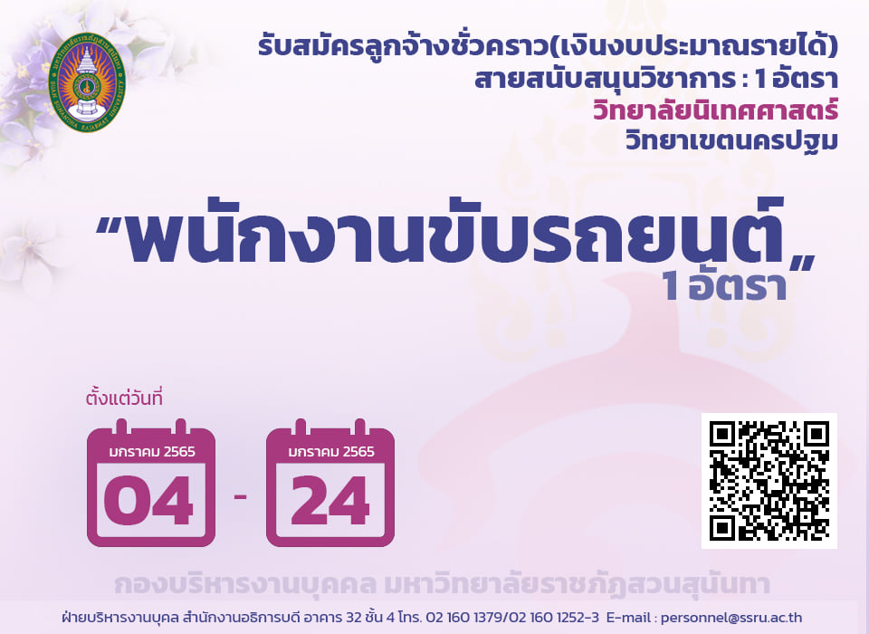 ประกาศรับสมัครลูกจ้างชั่วคราว พนักงานขับรถยนต์ 1 อัตรา สังกัดวิทยาลัยนิเทศศาสตร์ วิทยาเขตนครปฐม