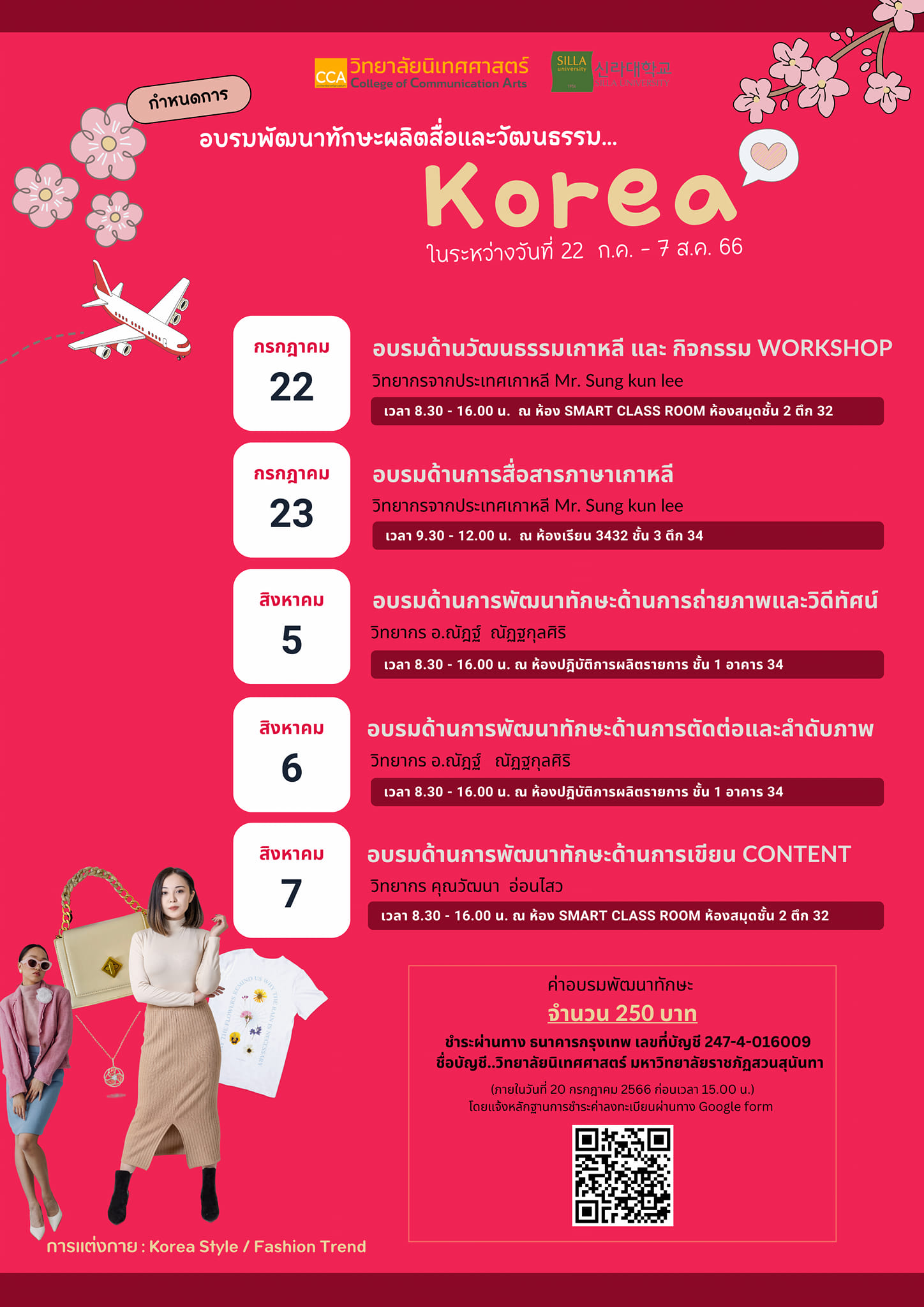 Open to interested outsiders Training together to learn Korean from native speakers And study production, filming, media, 20 seats, apply at the QR Code below or click https://forms.gle/96fGMjBX4L8inurh9 All this knowledge is only 250 baht!!