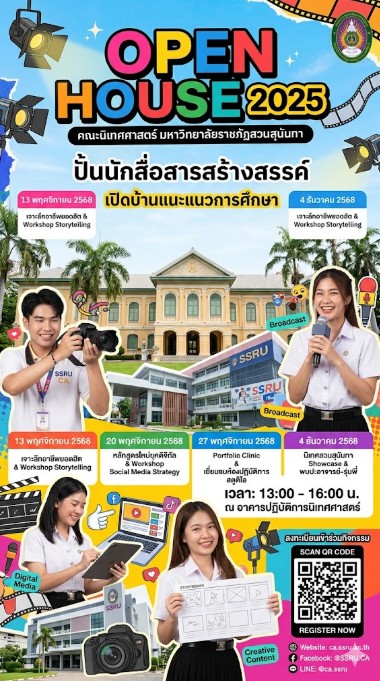 วิทยาลัยนิเทศศาสตร์ มหาวิทยาลัยราชภัฏสวนสุนันทา จัดกิจกรรมเปิดบ้านให้นักเรียนเข้าชมหลักสูตร ทดลองเรียน และรับคำแนะนำจากอาจารย์