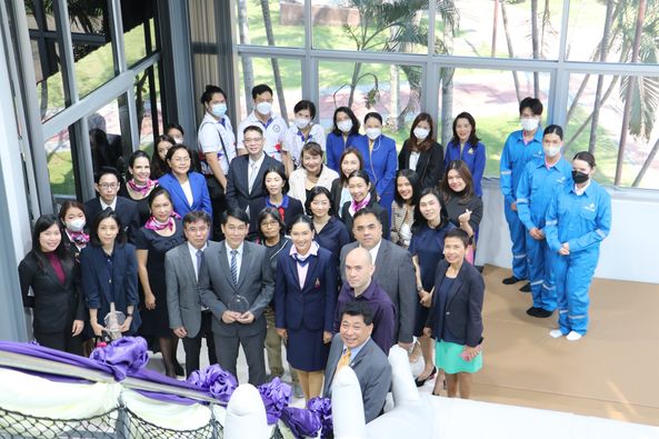 Prof. Kanpat U-Tapao, Dean of the College of Communication Arts, along with Dr. Som Som Kaewchuea, Deputy Dean for Administration. Attended the opening ceremony of the aviation laboratory in Aviation Business Branch, with Asst. Prof. Dr. Komsan Somanawat, Vice President for Nakhon Pathom Campus as the president Assoc. Prof. Dr. Chutikan Sriwiboon, President of Suan Sunandha Rajabhat University Participated in the ribbon-cutting ceremony for the opening of the laboratory and watch a demonstration of the use of an emergency laboratory Ready to join the monk ceremony Offering food offerings to monks at the school building, College of Service Industry Management, 1st floor (24 Feb. '23)