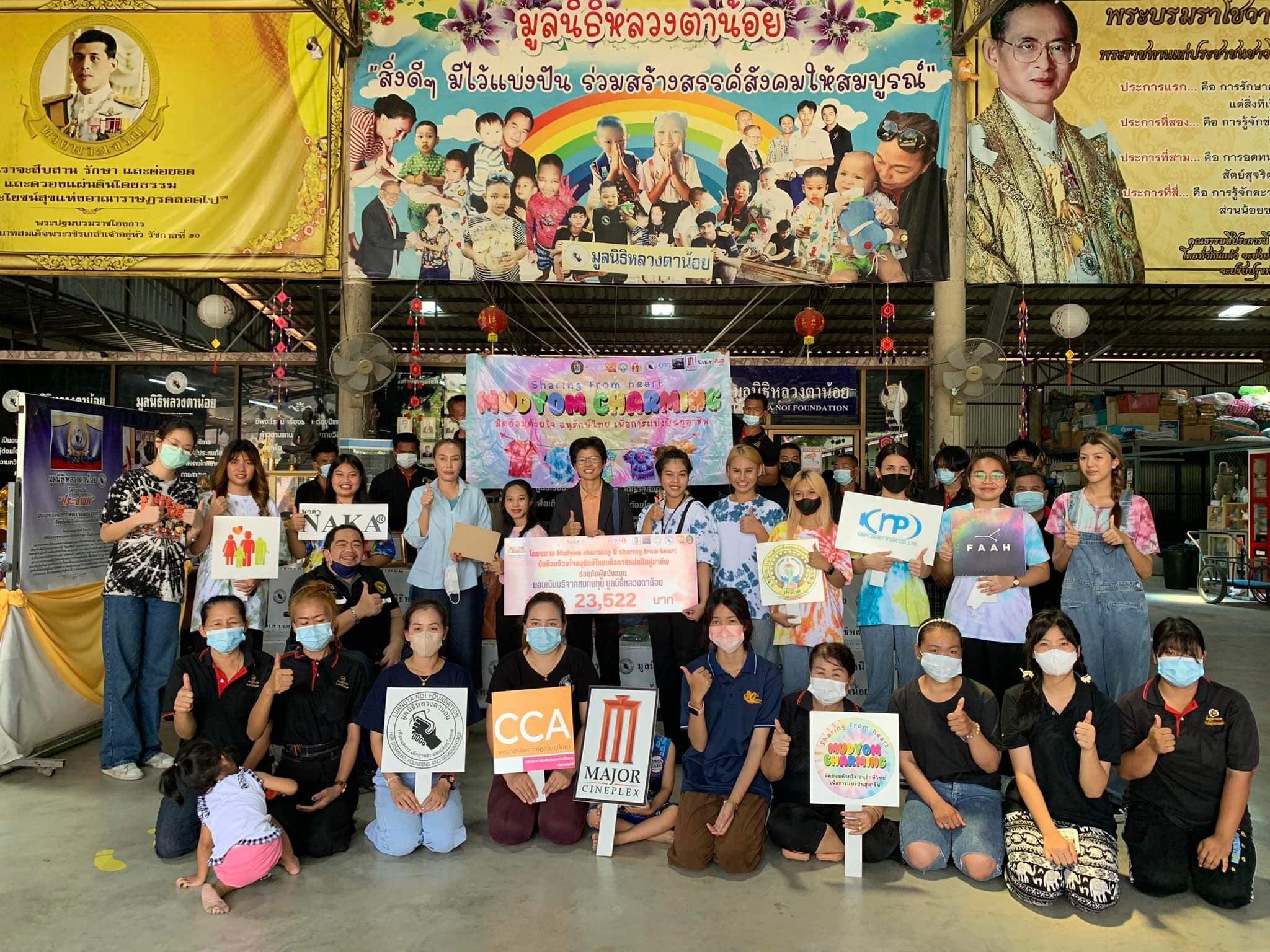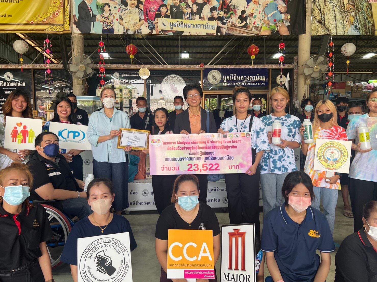 นักศึกษาชั้นปีที่ 3 แขนงวิชาการประชาสัมพันธ์และการสื่อสารเชิงกลยุทธ์ นำเงินจากโครงการ Mudyom Charming & Sharing from Heart มัดย้อมด้วยใจ อนุรักษ์ไทย เพื่อการแบ่งปันสู่อาชีพ มอบให้มูลนิธิหลวงตาน้อย