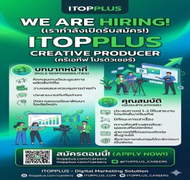 บริษัทดิจิทัลเอเจนซีเปิดรับ Creative Producer ทำหน้าที่คิดคอนเซปต์แคมเปญออนไลน์ วางแผนการผลิตวิดีโอ และดูแลทีมโปรดักชัน