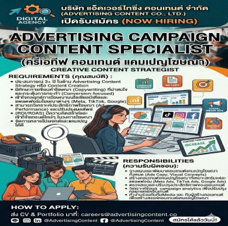 > Digital Agency เปิดรับ Advertising Campaign Content Specialist