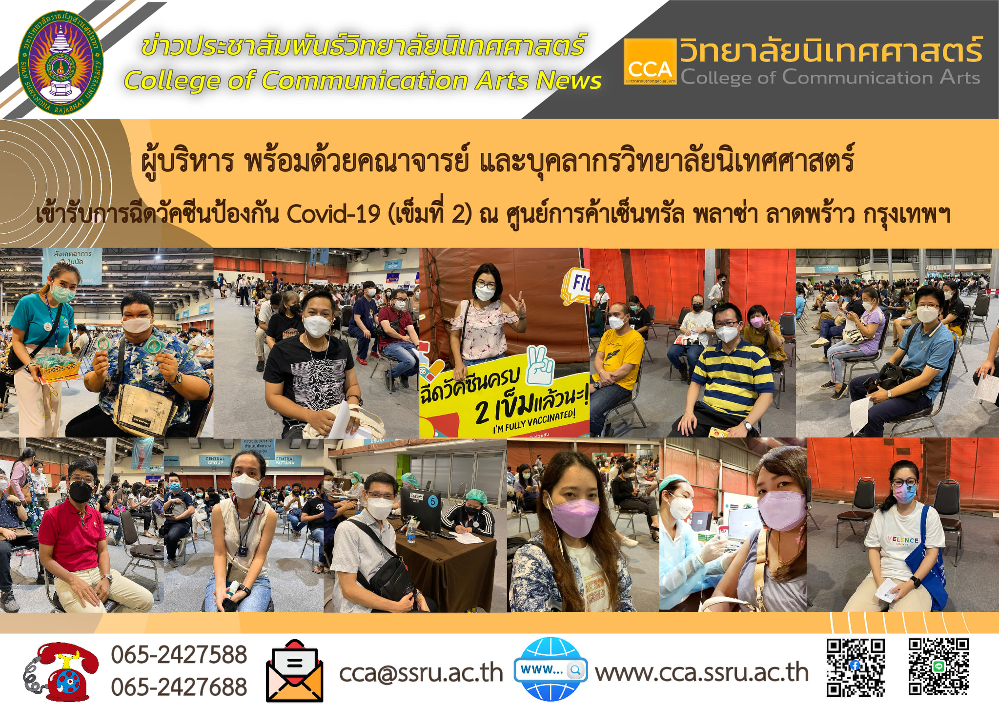 ว.นิเทศศาสตร์ เข้ารับการฉีดวัคซีนป้องกัน Covid-19 (เข็มที่ 2) เมื่อวันที่ 30 สิงหาคม 2564 เวลา 9.00 น. ณ หน่วยความร่วมมือบริการฉีดวัคซีน Covid-19 โรงพยาบาลรามาธิบดี ณ ศูนย์การค้าเซ็นทรัล พลาซ่า ลาดพร้าว กรุงเทพฯ ทั้งนี้เพื่อเตรียมความพร้อมในการบริการคณาจารย์ นักศึกษา และผู้มารับบริการวิทยาลัยนิเทศศาสตร์ต่อไป